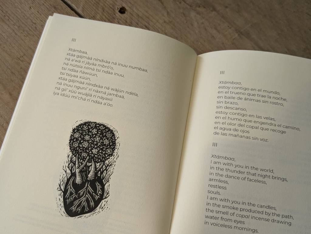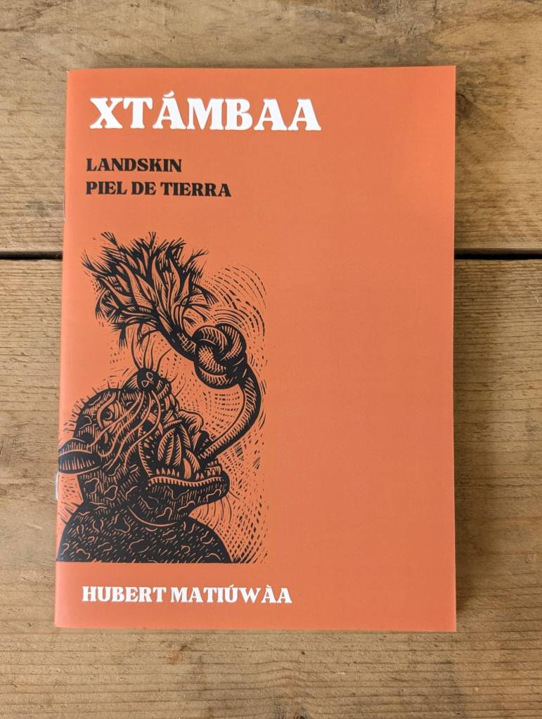 “Let us raise the word to the ear of the wind,” writes Hubert Matiúwàa in the first poem of Xtámbaa (Landskin). The word comes first and must be cared for because the Mè’phàà language has a word for everything, living and dead, and the work of looking after those words also means looking after the relations with the living world and with the ancestors that they contain and enact. Raising the word to the wind’s ear addresses the elements of the world, but does not assume they will listen or respond; reciprocity is always possible but never assured.